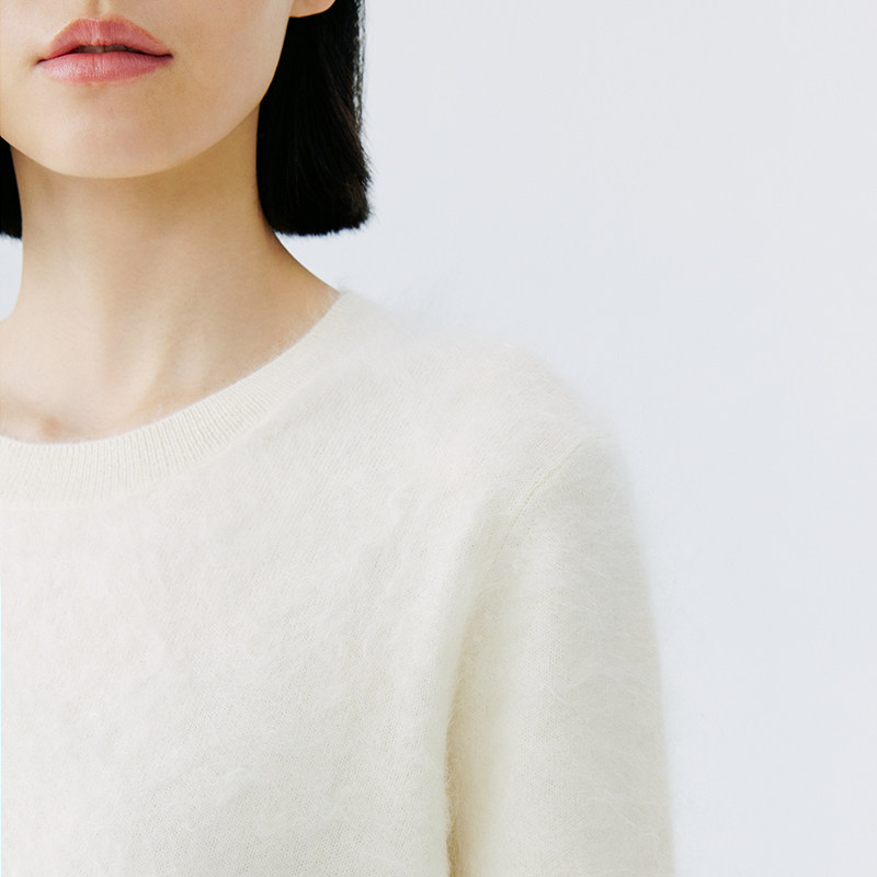 T恤女2026春季 范洛Fano 毛边宽松圆领打底衫 长袖 上衣 仿羊绒插肩袖