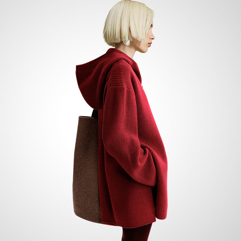 时尚 连帽双拉链软糯长袖 针织开衫 毛衣外套女春季 休闲上衣 气质帽衫