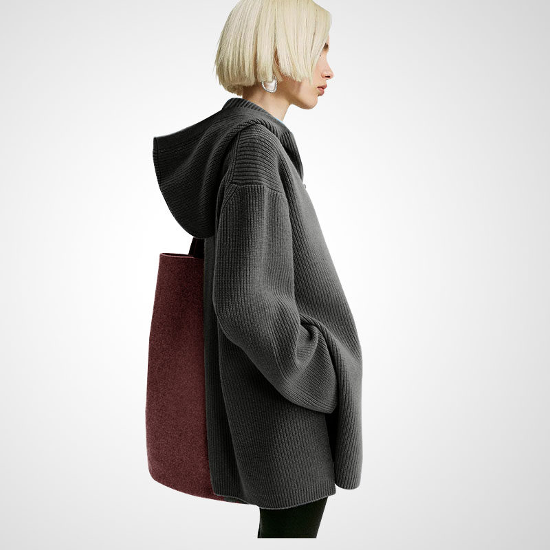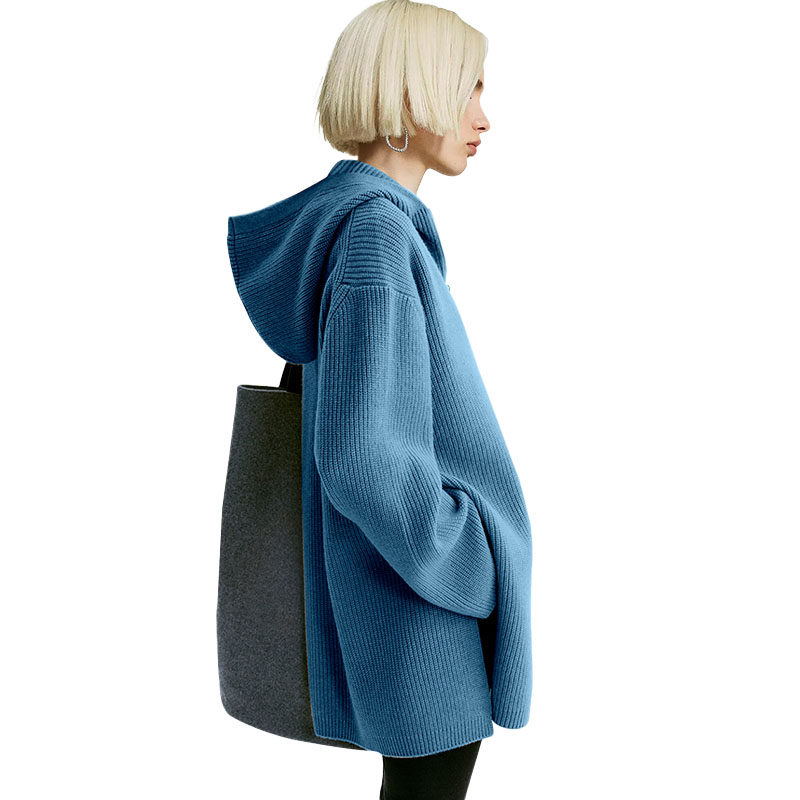 2026新款 洋气时尚 慵懒风连帽毛衣女中长款 春季 上衣 宽松休闲针织衫由