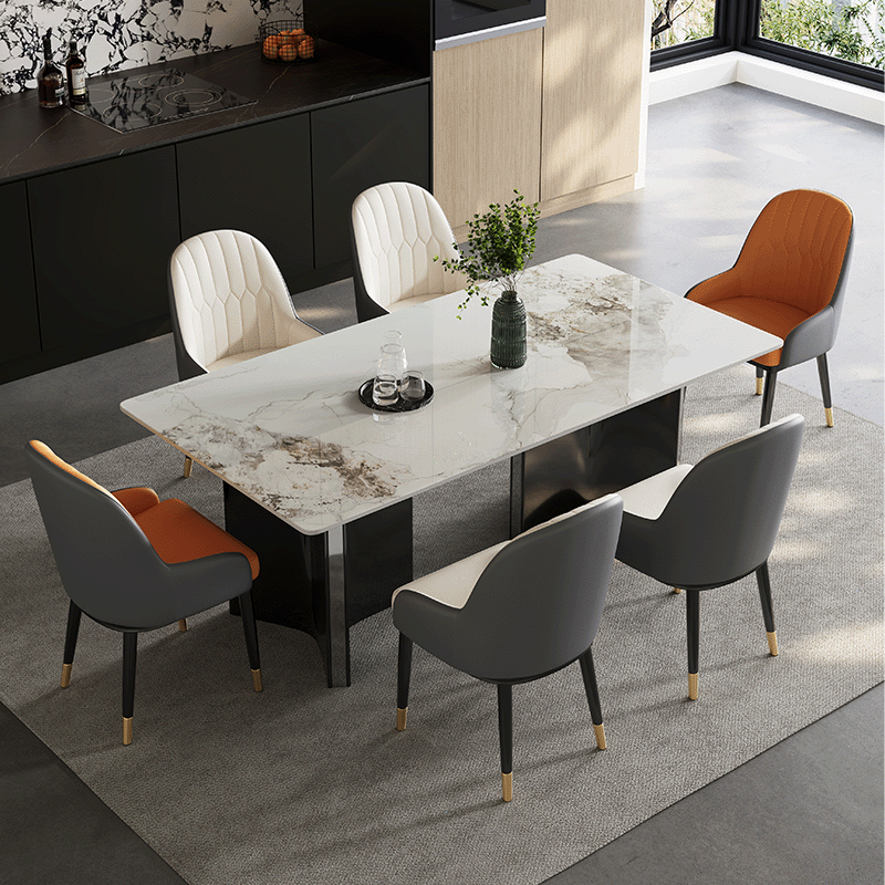 轻奢岩板餐桌家用小户型现代简约长方形饭桌客厅餐桌椅组合家庭用