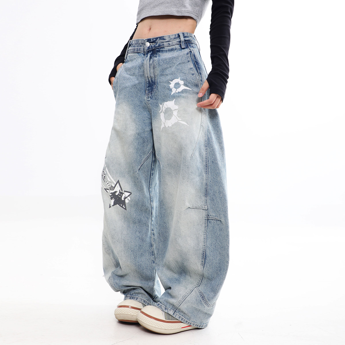 休闲百搭街头弯刀裤 春夏小个子baggy 复古宽松牛仔裤 梁拌泡菜美式由