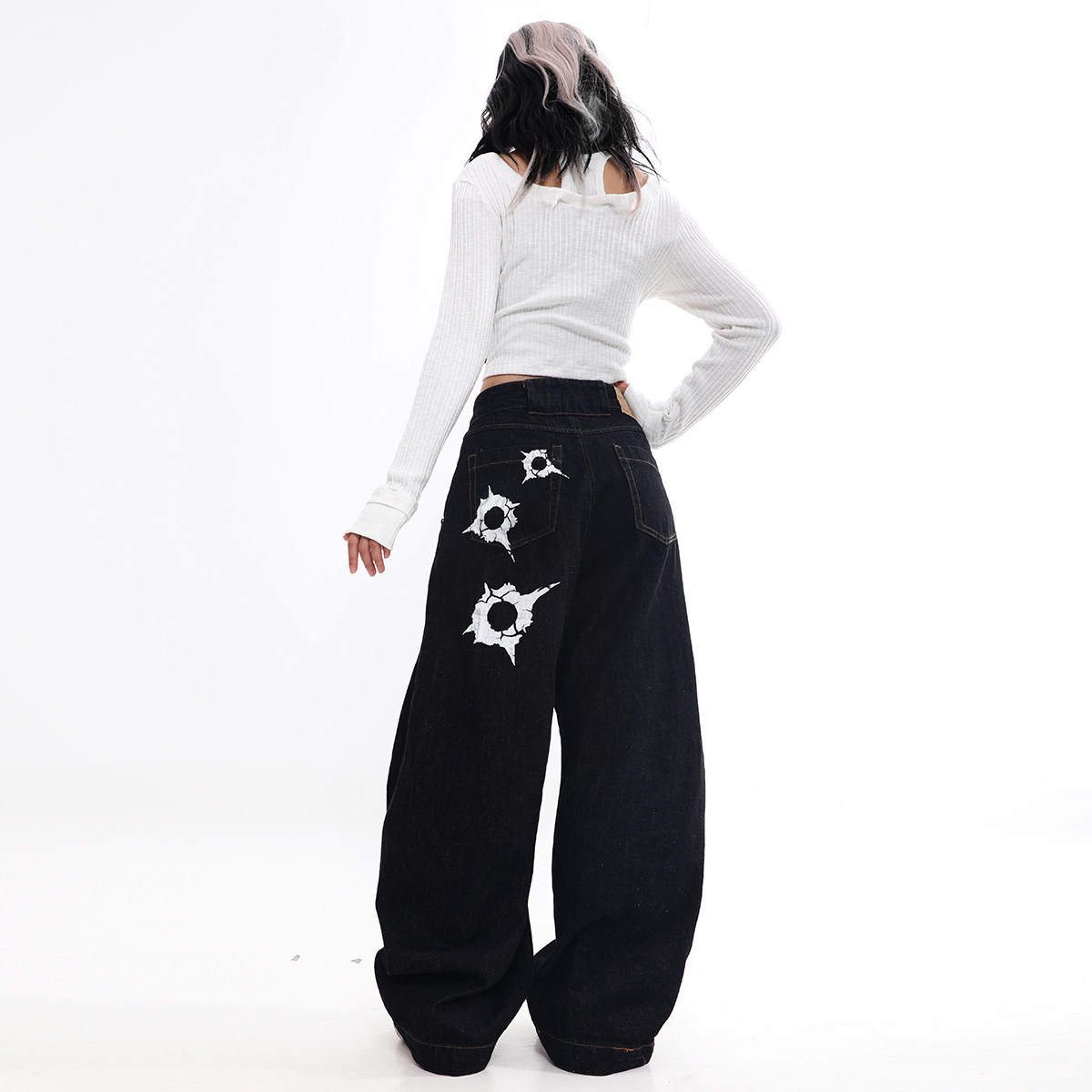 eihey诶嘿低腰修身 长裤 阔腿裤 女 直筒休闲宽松做旧磨白水洗牛仔裤