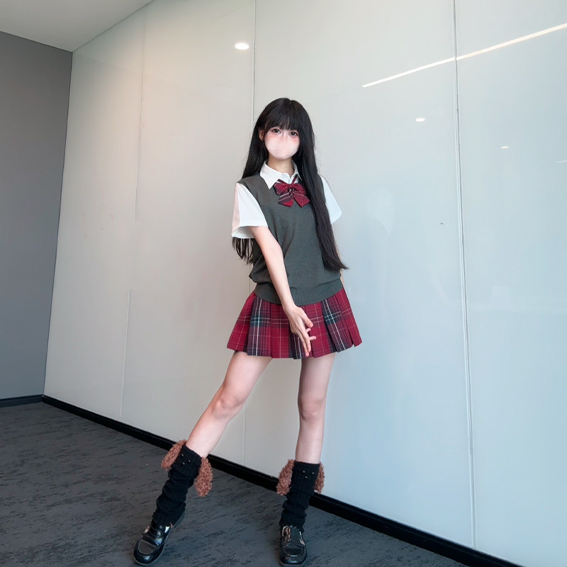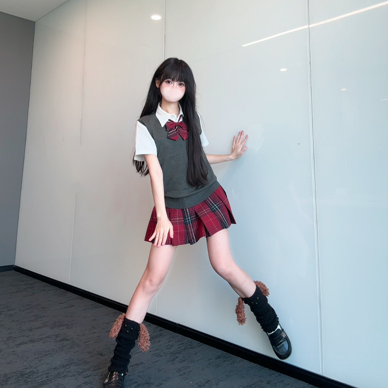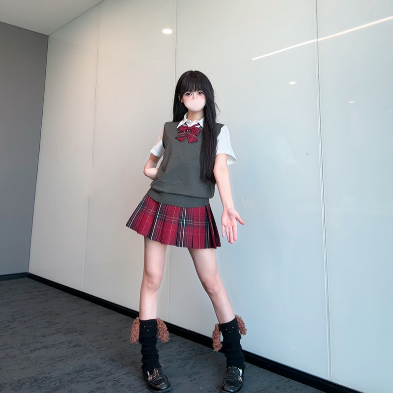 校供格裙红色百褶裙女学院风安可拉红 北璃酱jk制服野辣子原创正版