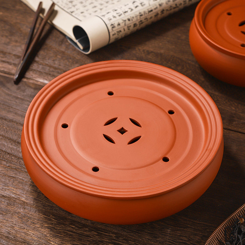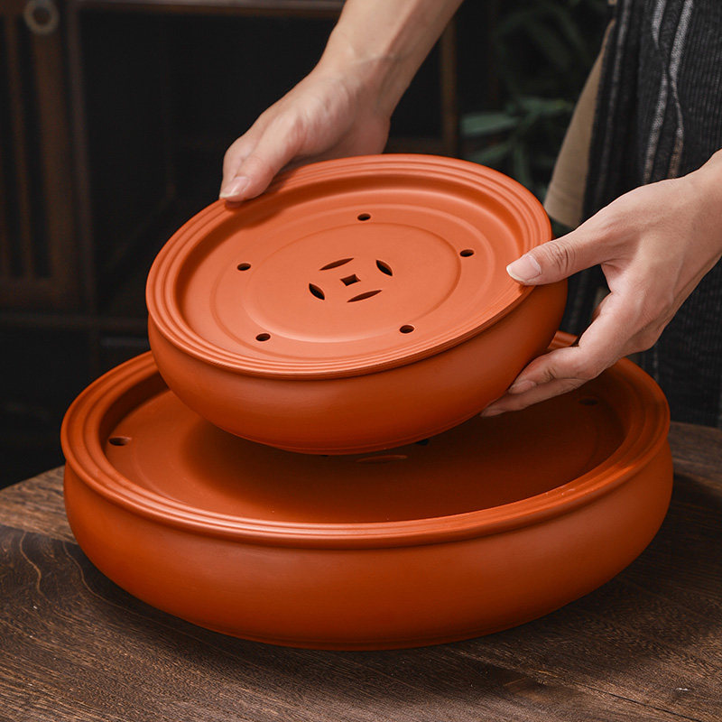 紫砂茶海茶盘茶台 圆茶托沥水陶瓷潮汕传统 家用储水功夫茶具简约