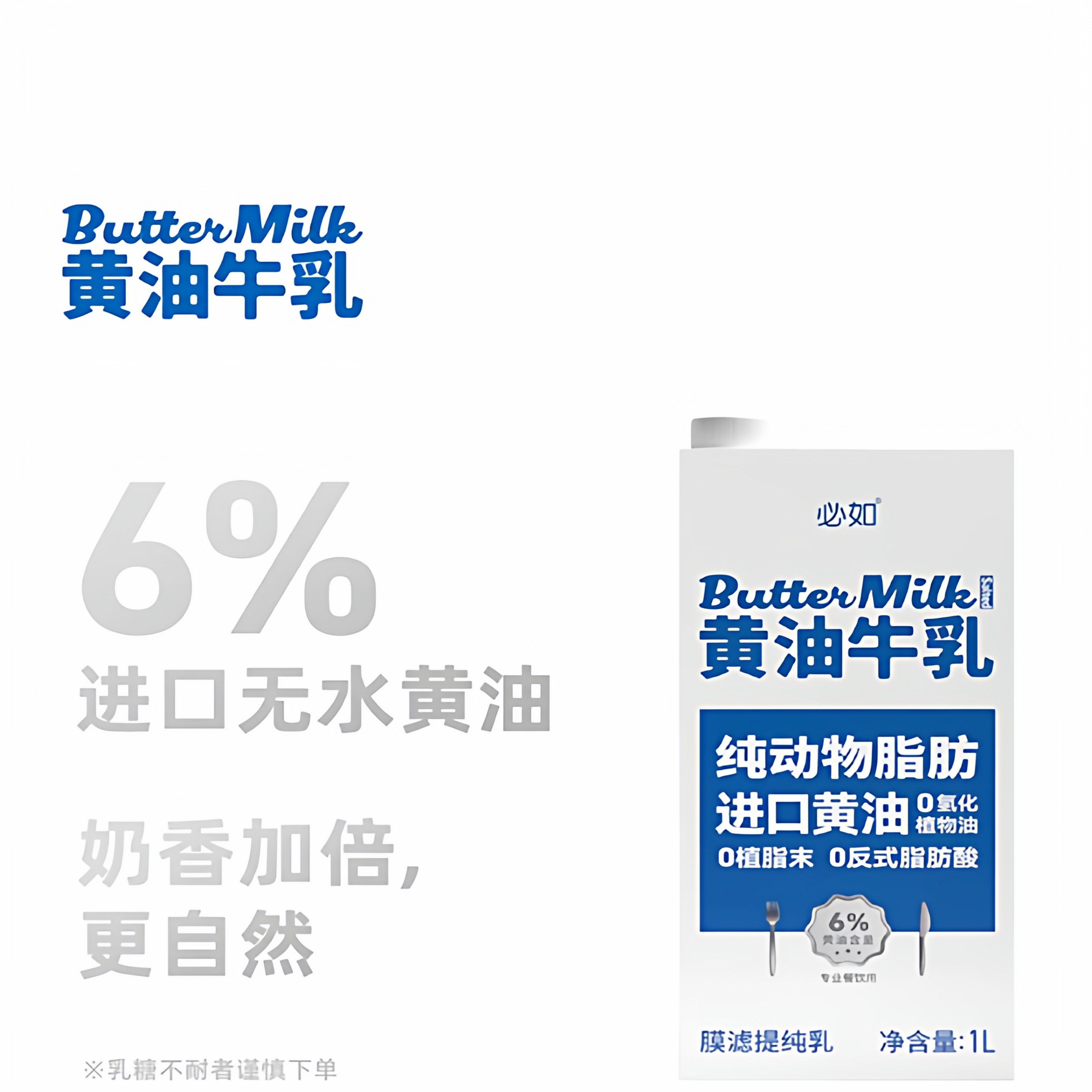 必如黄油牛乳1L咖啡烘焙奶茶原料牛奶动物脂肪diy拿铁常温厚牛乳