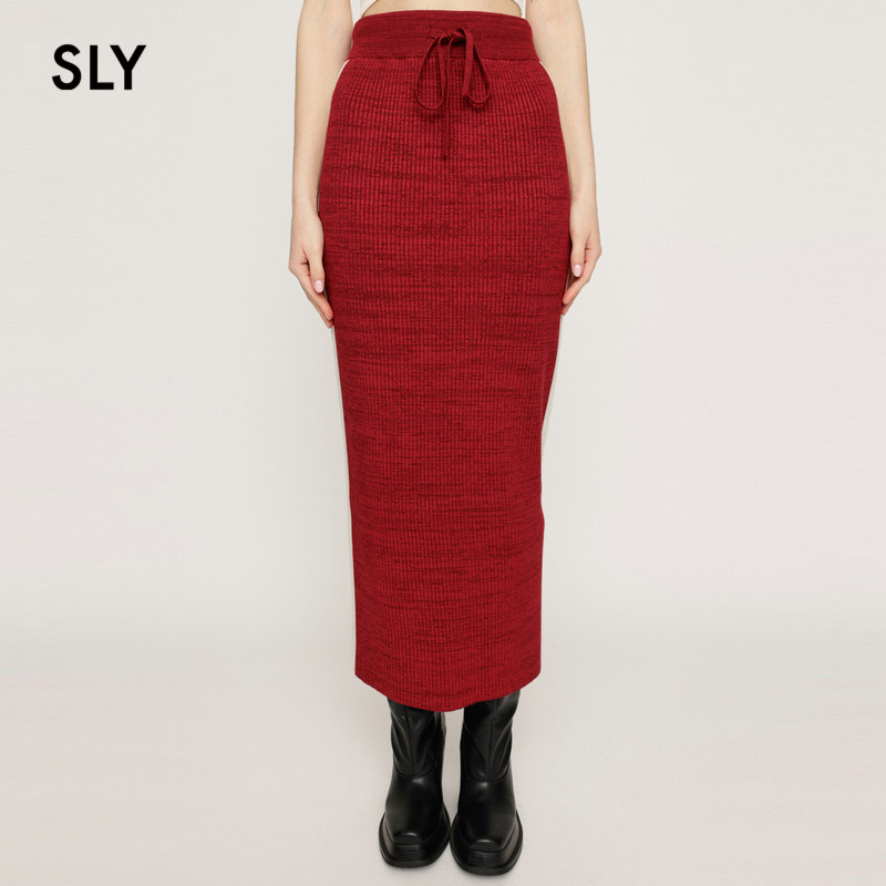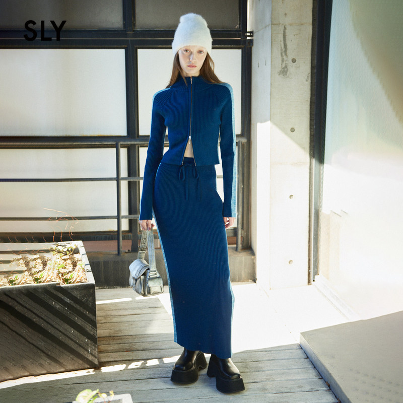 SLY 3920 复古风拉链撞色侧缝开叉针织半身裙女030GAZ71由