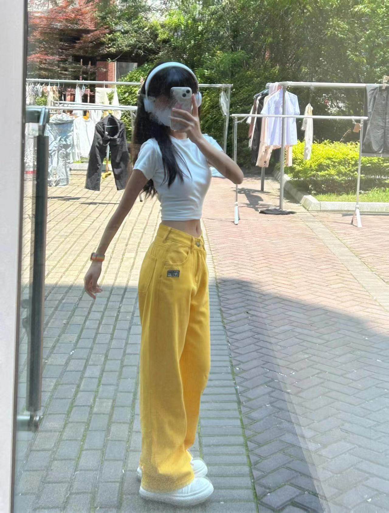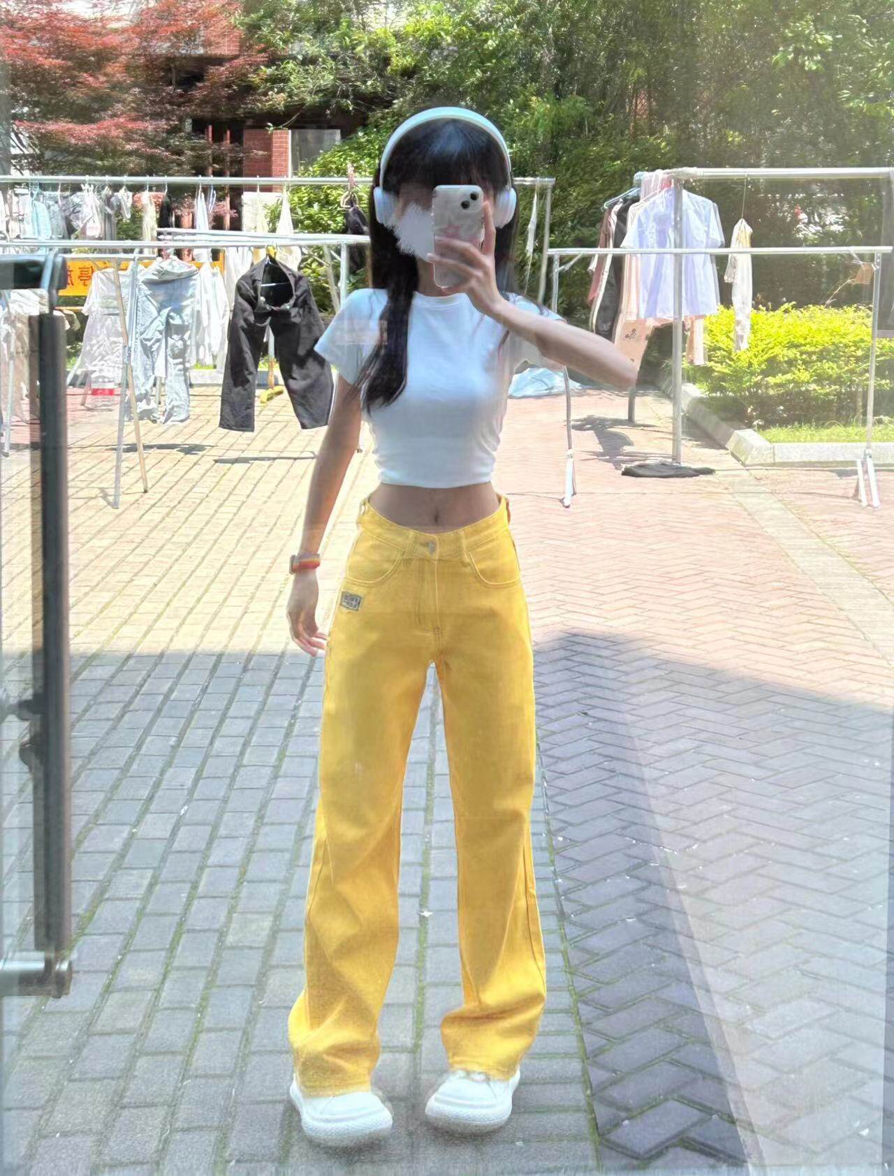 夏季 刺绣显瘦拖地牛仔阔腿裤 子女街头多巴胺百搭宽松直筒长裤 新款