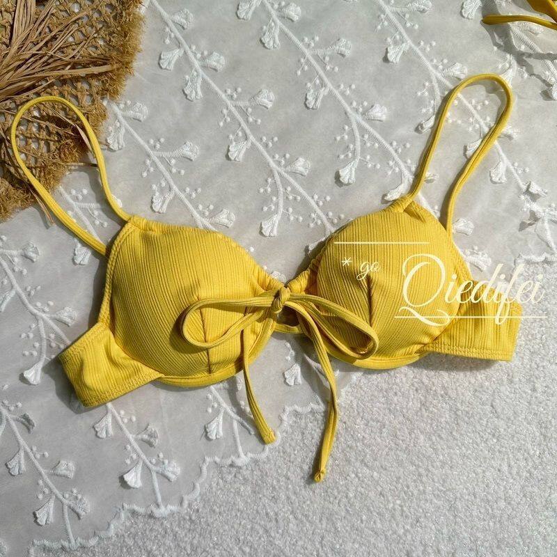 甜辣妹新款 纯欲比基尼小胸聚拢带钢托三点式 洋气性感柠檬黄色新款由