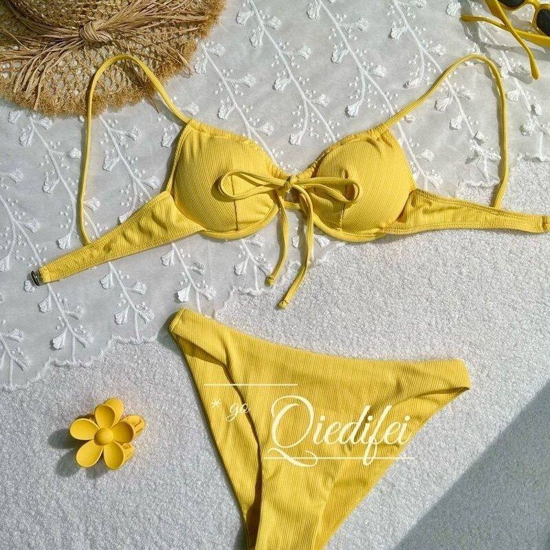 ⭐小红书推荐⭐洋气性感柠檬黄色新款 纯欲比基尼小胸聚拢带钢托三点式 甜辣妹新款,所属比基尼分类,由淘宝网挑选推荐!小红书抖音网红同款!哪里有卖洋气性感柠檬黄色新款 纯欲比基尼小胸聚拢带钢托三点式 甜辣妹新款和多少钱质量怎么样✅。