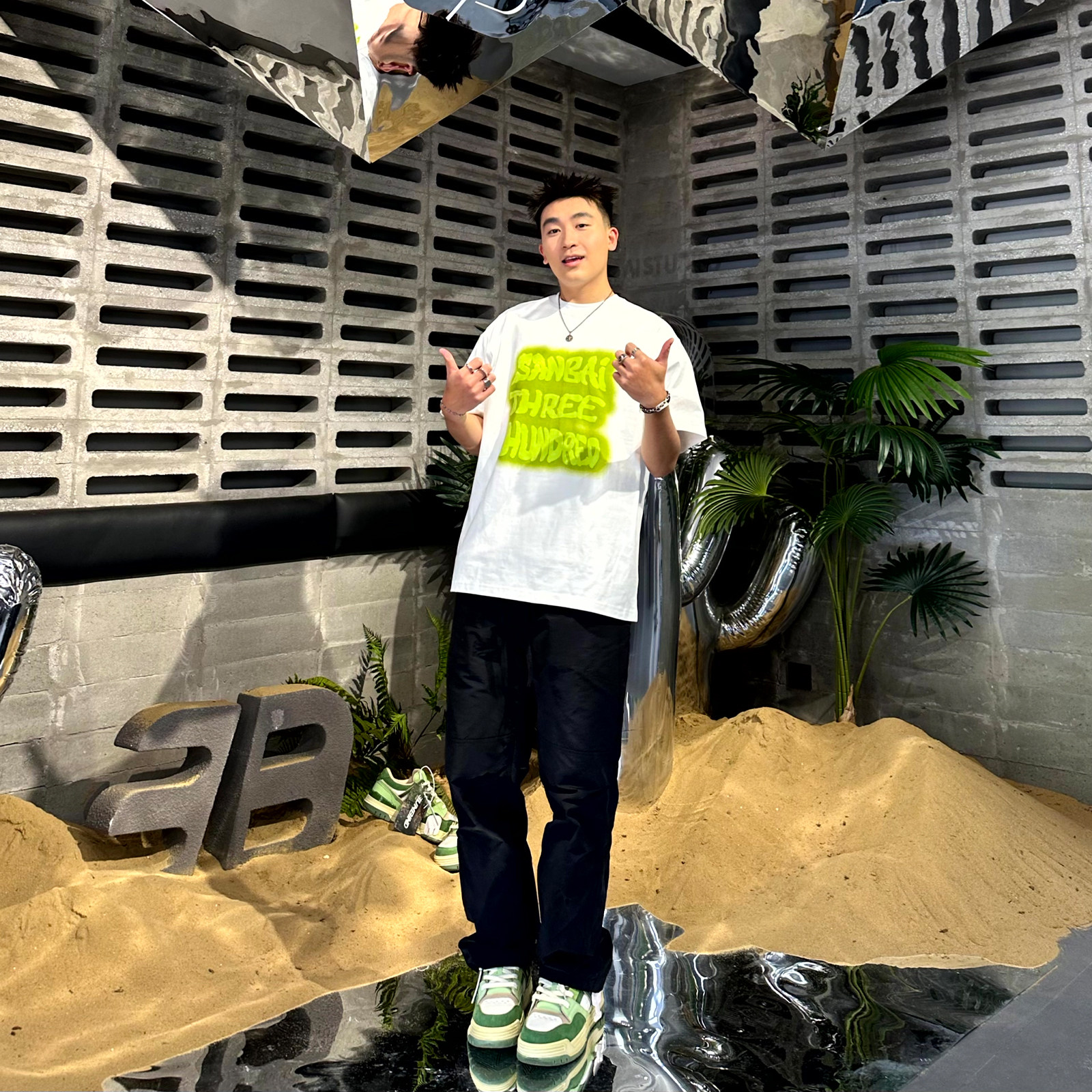 新款 SANBAI 叁佰绿色方块字母男士 凉感t恤短袖 285g 发泡印花半袖由