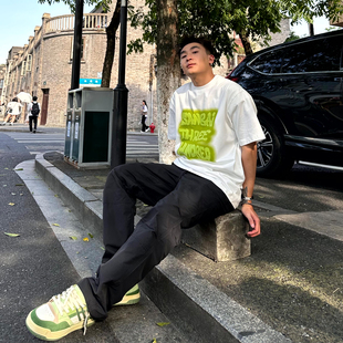 半袖 纯棉重磅潮牌印花短袖 上衣1 宽松美式 新款 T恤衫 男女夏季
