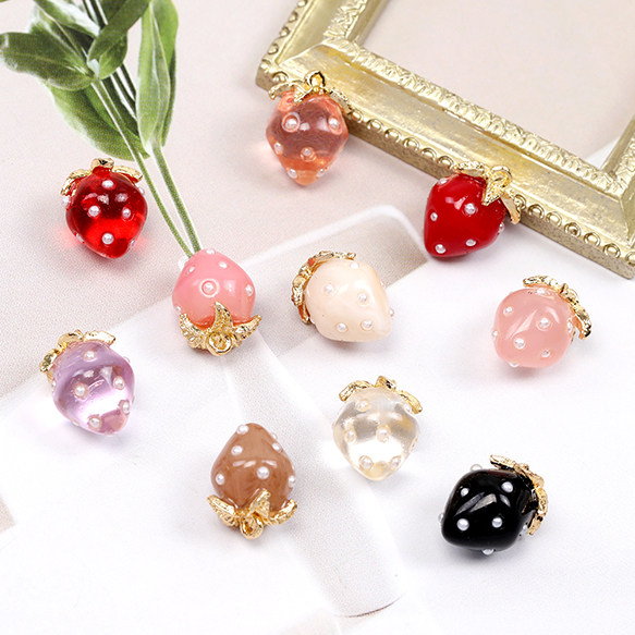品质可爱形象DIY万能吊坠A3840 树脂小号珍珠草莓日本进口ins爆款由