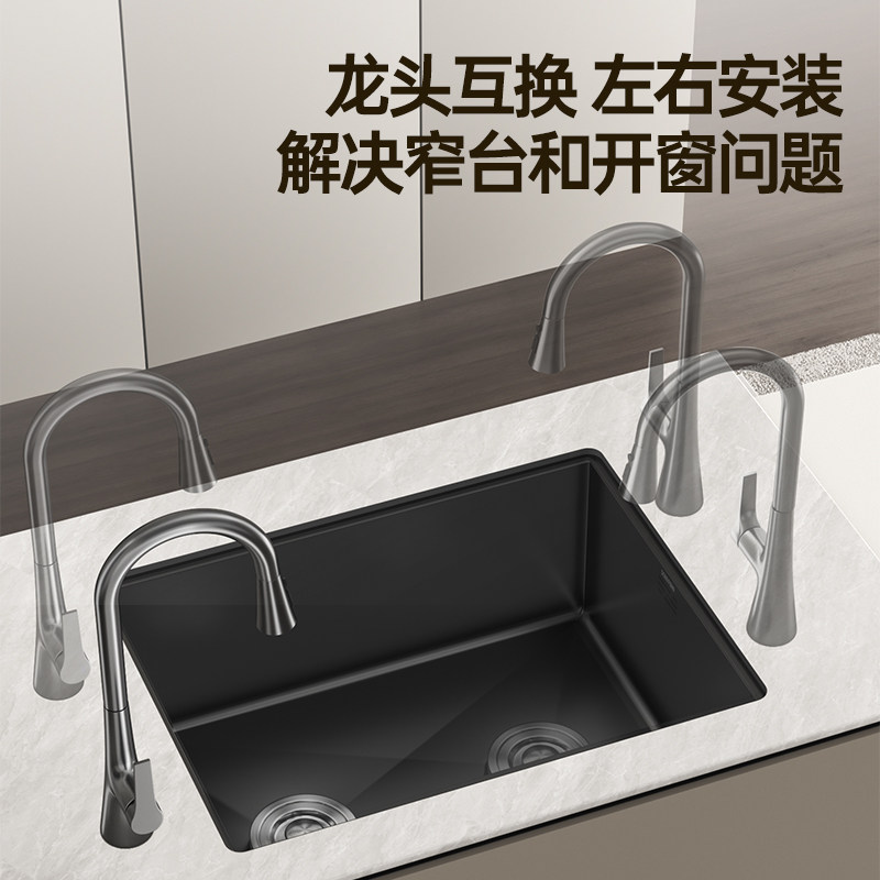 悍高厨房纳米水槽手工单槽304不锈钢灰色洗菜盆洗碗盆大单盆套餐