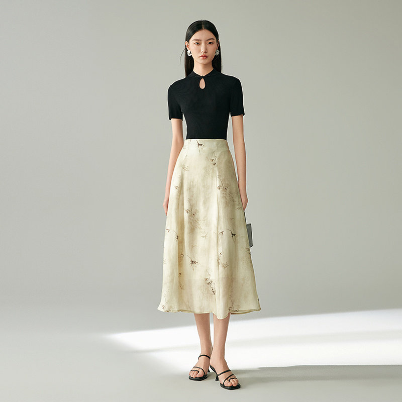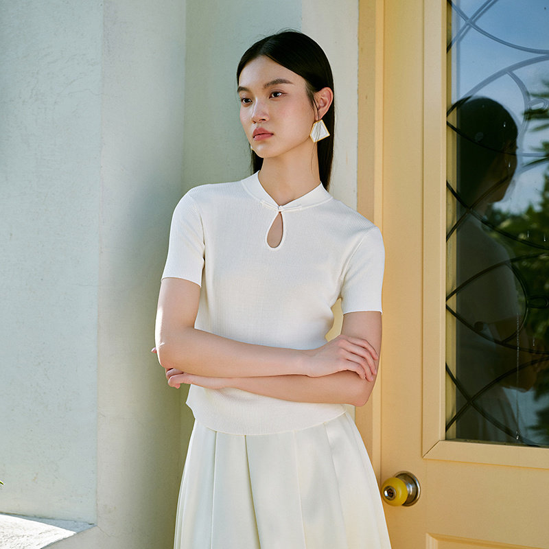 MOFAN摩凡新中式 女夏新款 气质暗夜黑修身 毛衣 盘扣设计针织衫
