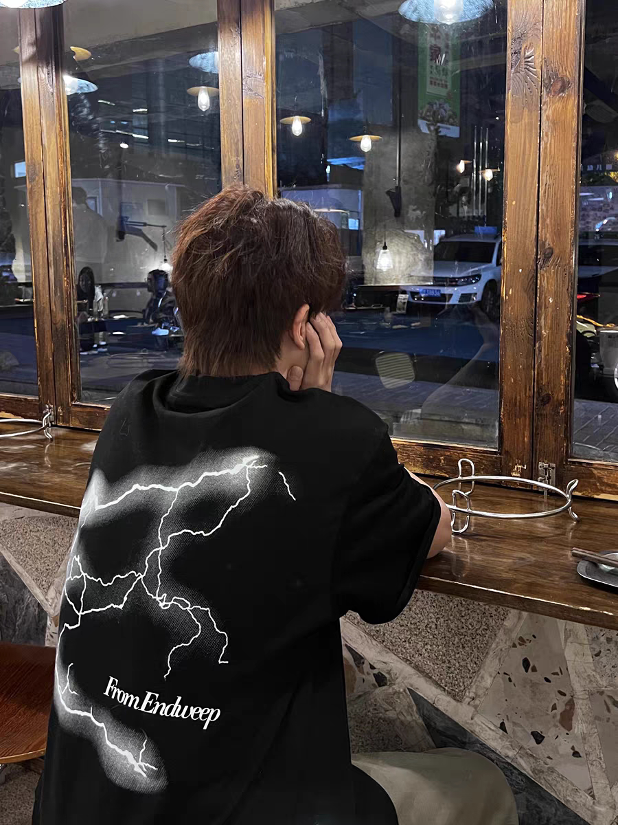 为您提供商品T恤男女夏季 重磅高街情侣上衣bf慵懒风 复古闪电印花短袖 国潮美式的详细介绍,