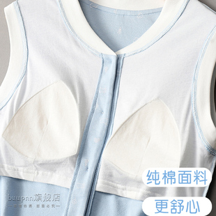 带胸垫前开扣背心全棉女中老年妈妈印花无袖 宽肩内衣 汗衫由