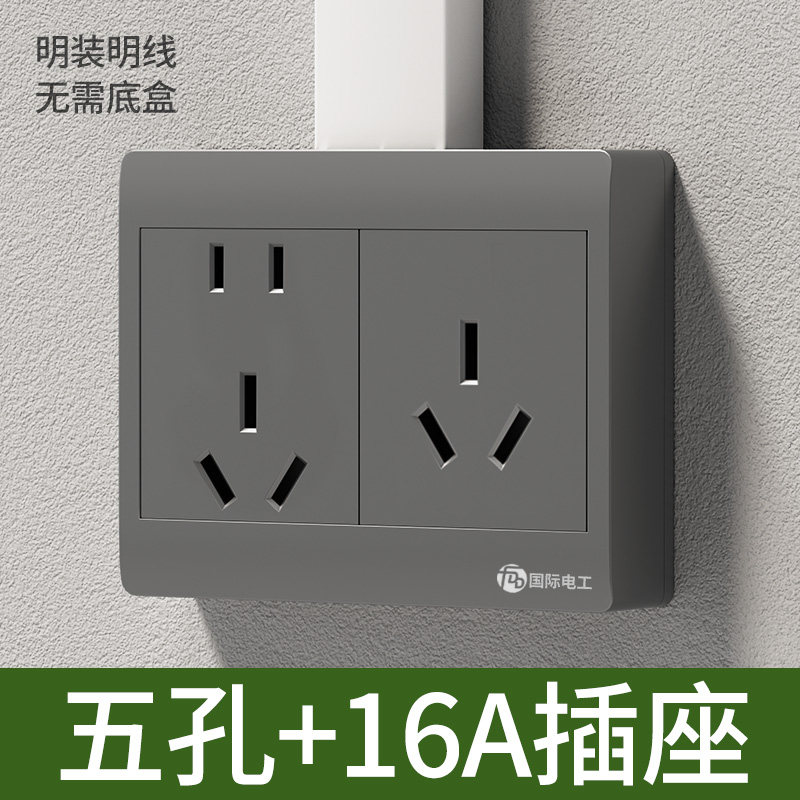 明装 16a大功率面板明盒明线16安 空调插座热水器专用5孔10A