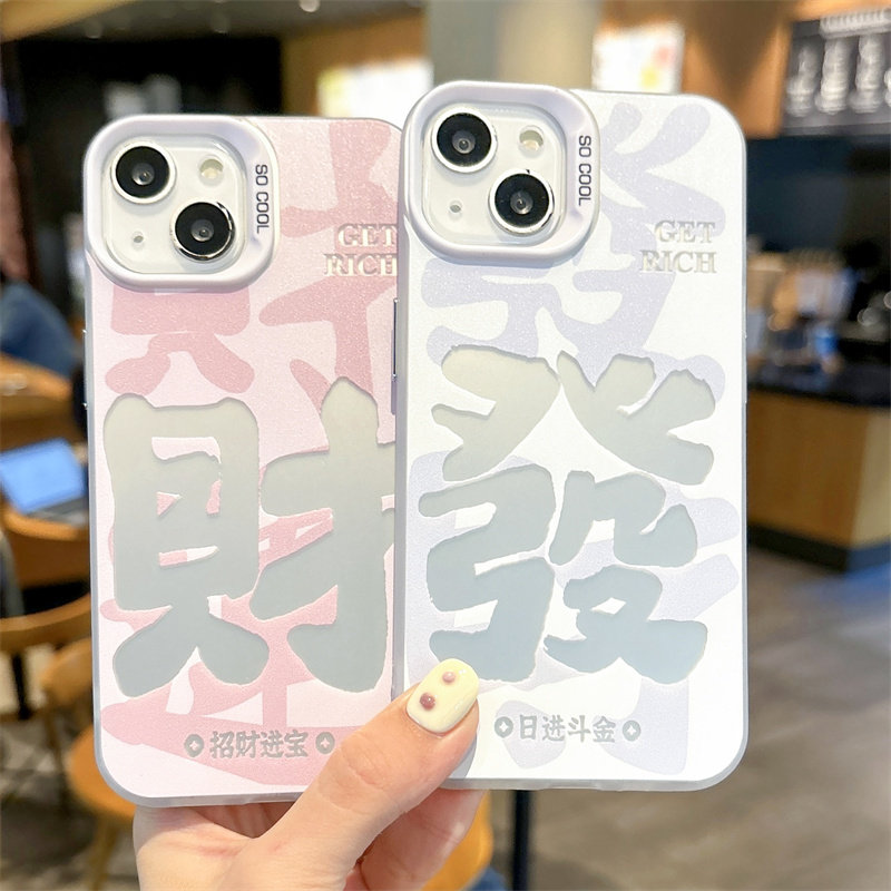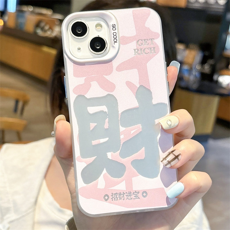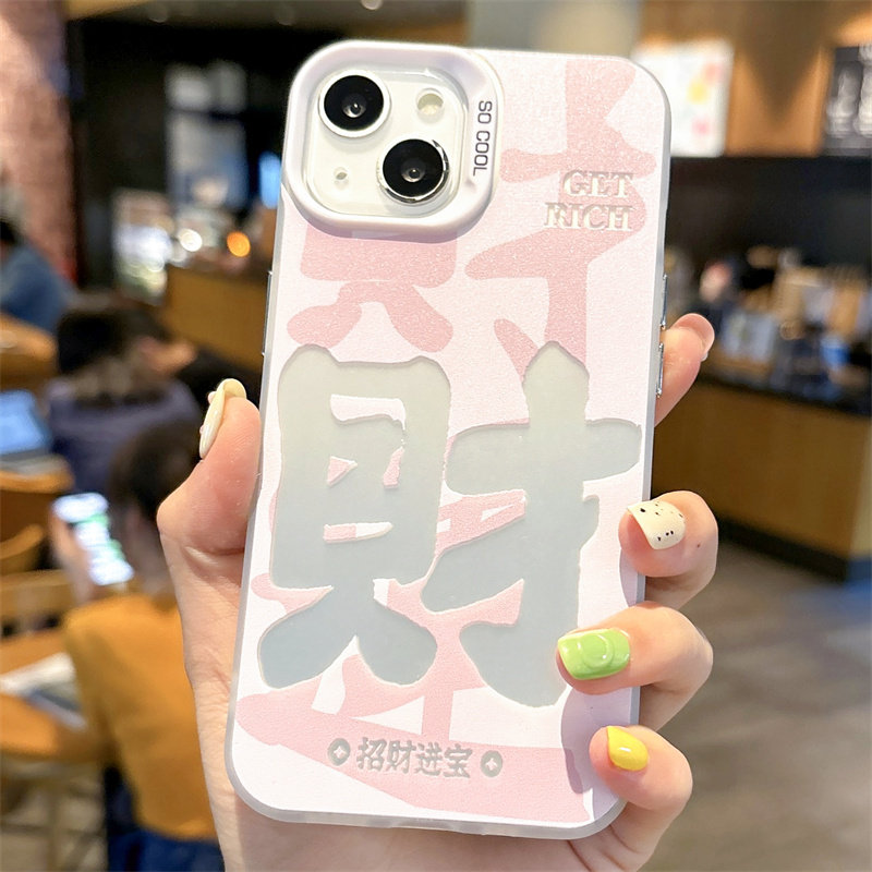ins情侣发财招财进宝适用iPhone15ProMax少女粉手机壳苹果14Plus软壳13硅胶12mini防摔Xr文字男7 8创意个性