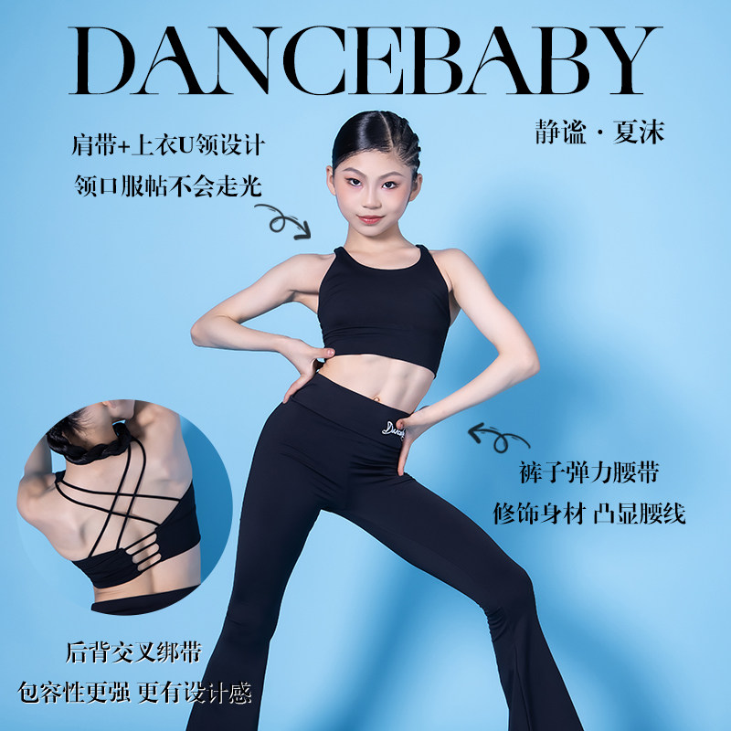 Dancebaby拉丁舞服新款 训练服舞蹈服短裤 打底练习裤 ID02 儿童套装