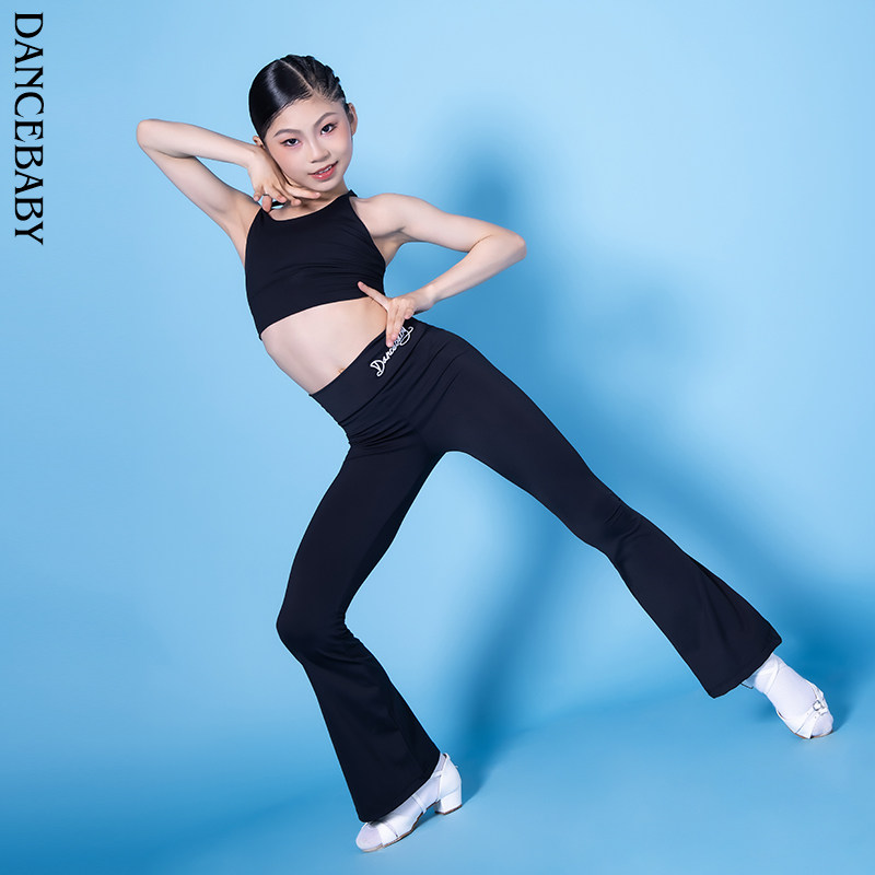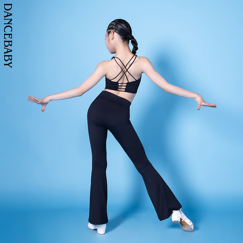练习套装 练功服女孩拉丁舞训练上衣喇叭裤 儿童舞蹈服女童春秋长袖