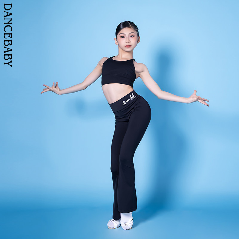 夏季 星辰拉丁舞服女童练习套装 少儿练功服长裤 显瘦时尚 舞蹈裤 修身