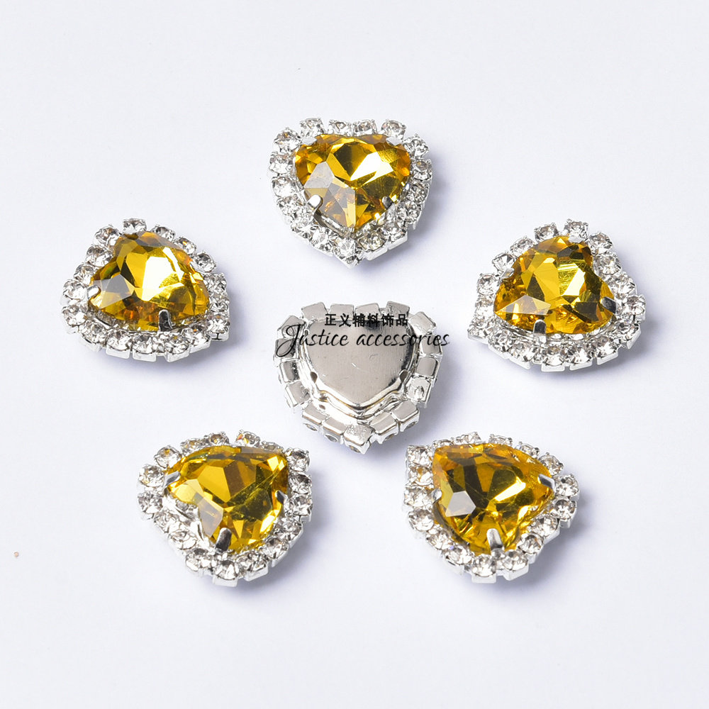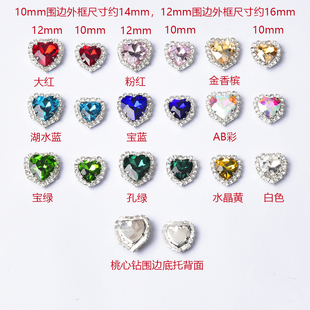 头饰包鞋 配件 12mm彩色桃心围边玻璃水晶手缝钻diy服装 直销10mm