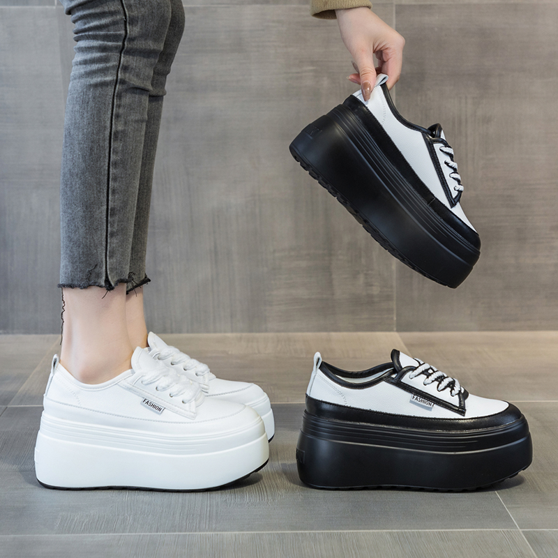 增高女鞋 2026春夏新款 女摇摇鞋 松糕鞋 真皮透气小白鞋 厚底休闲单鞋
