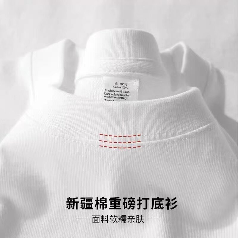 内搭厚实男女款 t恤宽松纯色上衣白色体恤打底衫 210g重磅纯棉长袖