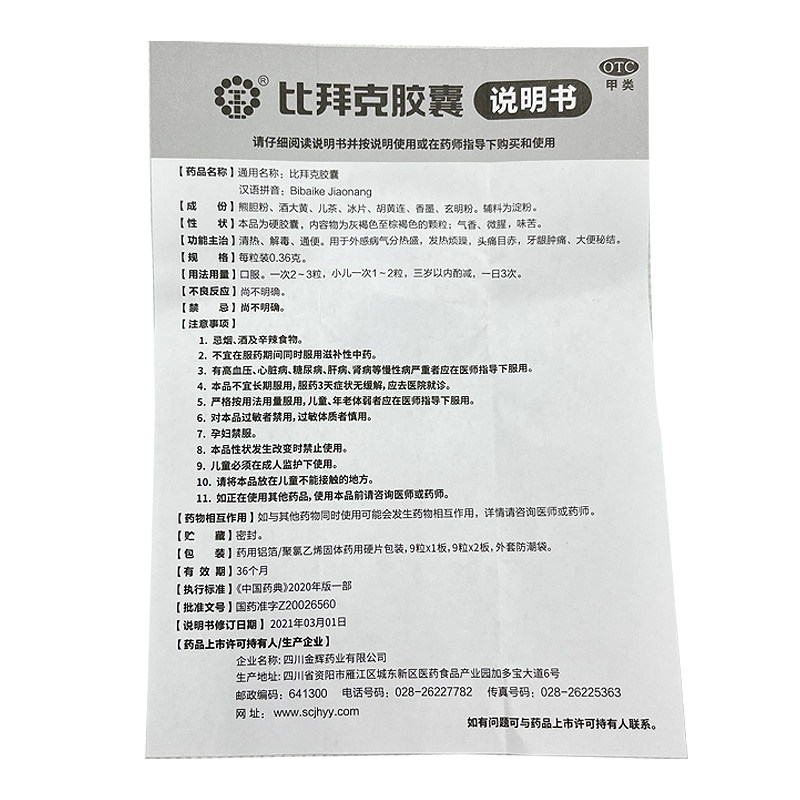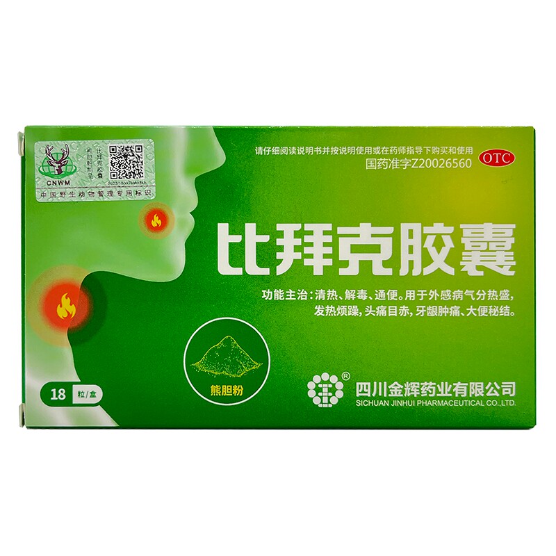 比拜克 清热解毒通便发热头痛目赤牙龈肿痛 比拜克胶囊18粒 金辉由