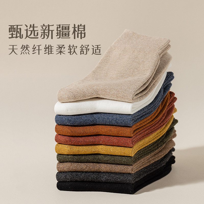 100%新疆棉纯棉袜子男女同款 运动袜中筒四季 短筒长袜ins潮 6双