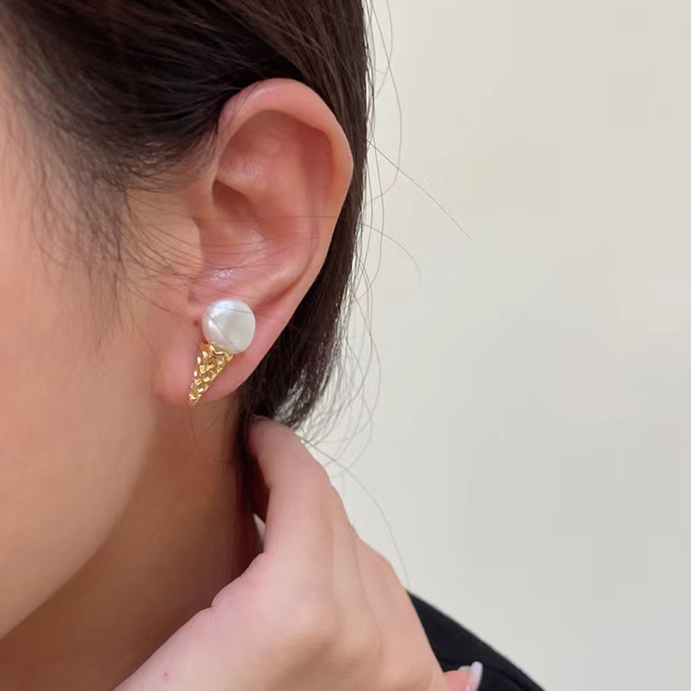 金色银色甜筒耳环女 DIY珍珠配件 S925 纯银耳钉空托 9mm圆异 配7