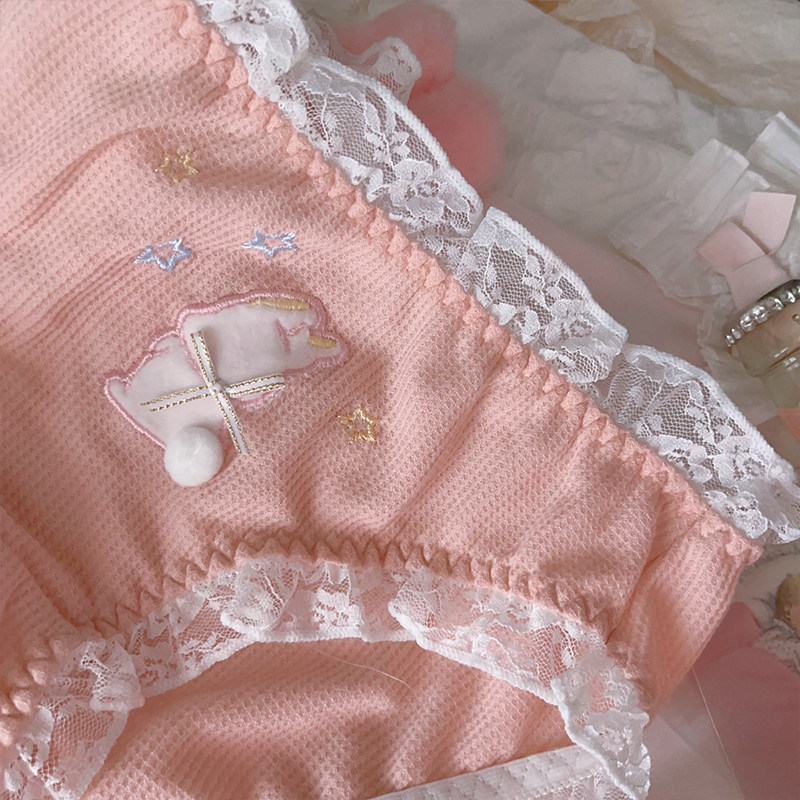 为您提供商品粉色兔子内裤 女士可爱甜美日系卡通纯棉蕾丝纯欲少女风女生三角裤的详细介绍,