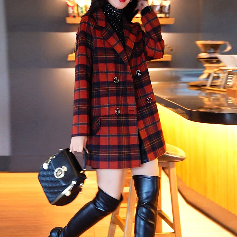 为您提供商品新款 2023年 气质小个子羊毛呢格子外套秋冬季 红色双面呢大衣女韩版的详细介绍,