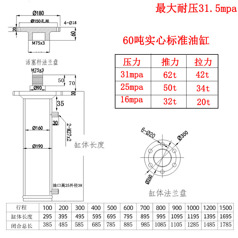 为您提供商品液压油缸50吨60t实心双向法兰液压缸大全手动电动压力打包机油顶的详细介绍,