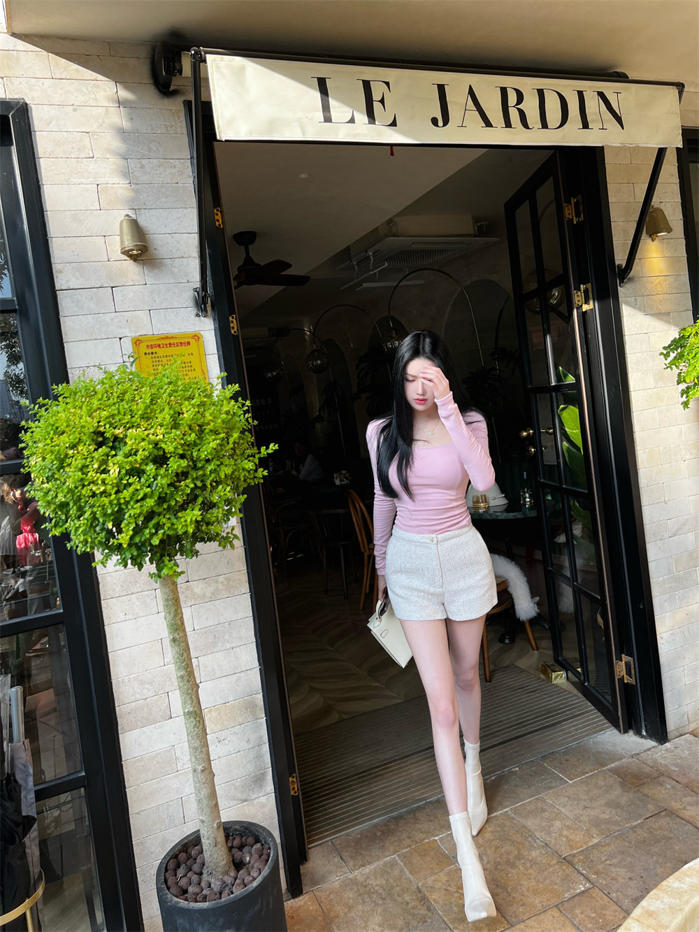 green大姐姐 慕斯羊绒磨毛方领长袖 上衣修身 内搭打底 纯欲塑形T