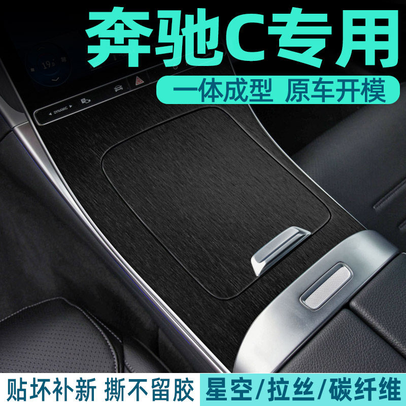 变色龙 25奔驰C级内饰改装 c260中控贴膜c200l面板装 饰贴纸 专用22由