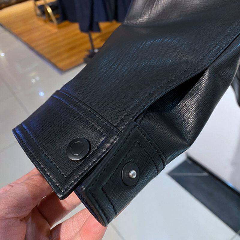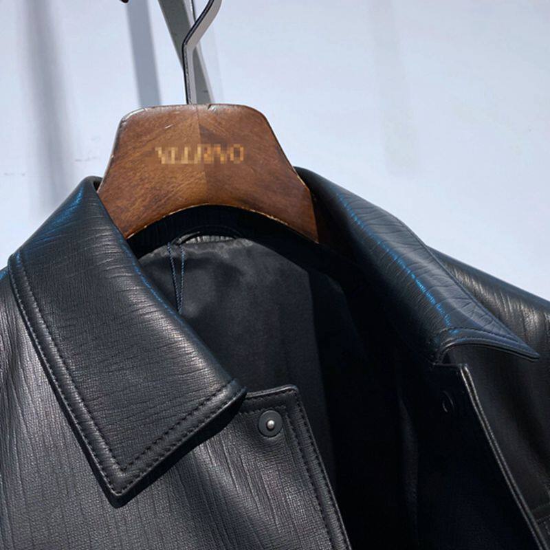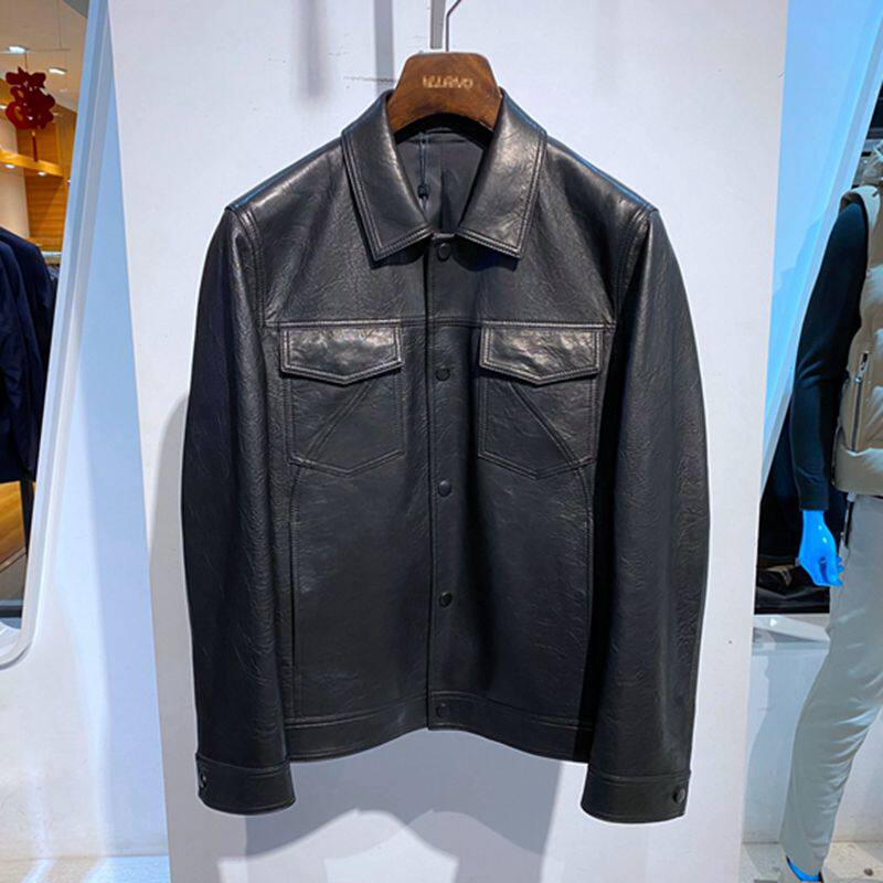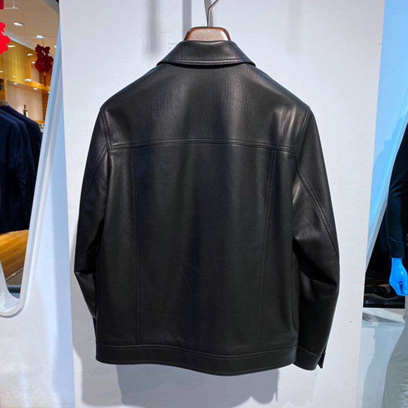 黑色翻盘单排扣 春秋装 样衣 单皮衣 百搭通勤 男士 羊皮真皮 打版