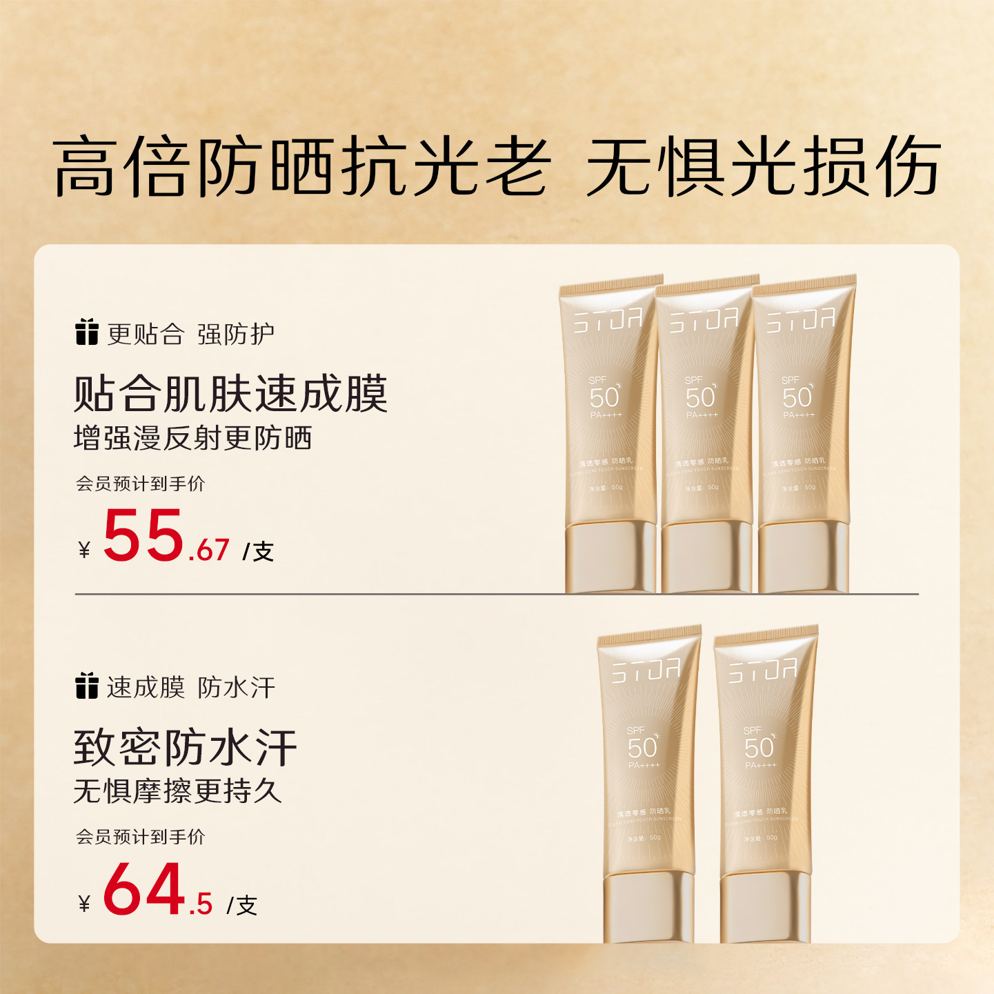 雅因子stor防晒霜高倍防紫外线防水防汗零感清爽不油腻学生军训