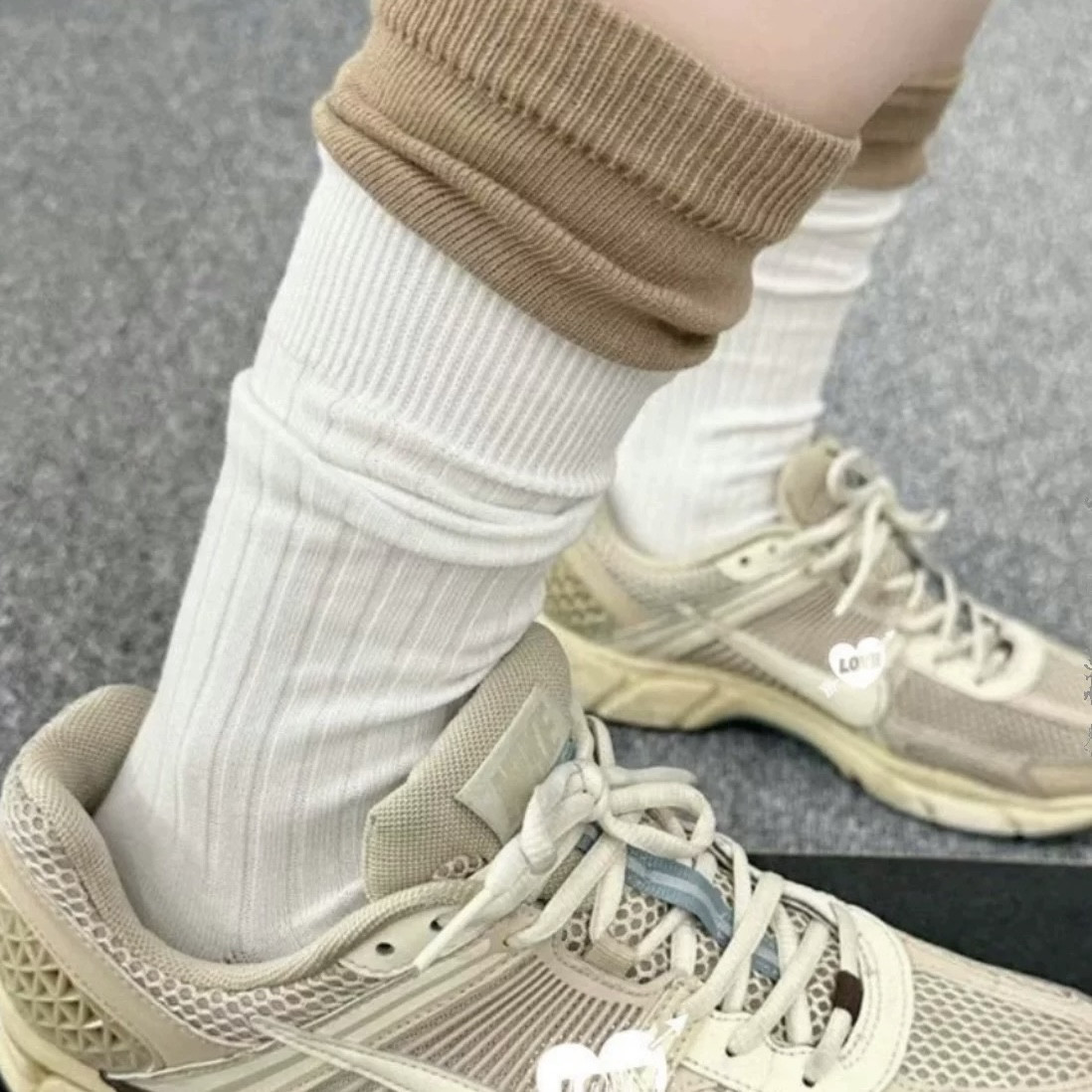 白色堆堆袜子女款 中筒纯棉黑色女士无骨2026新款 爆款 月子袜 夏薄款