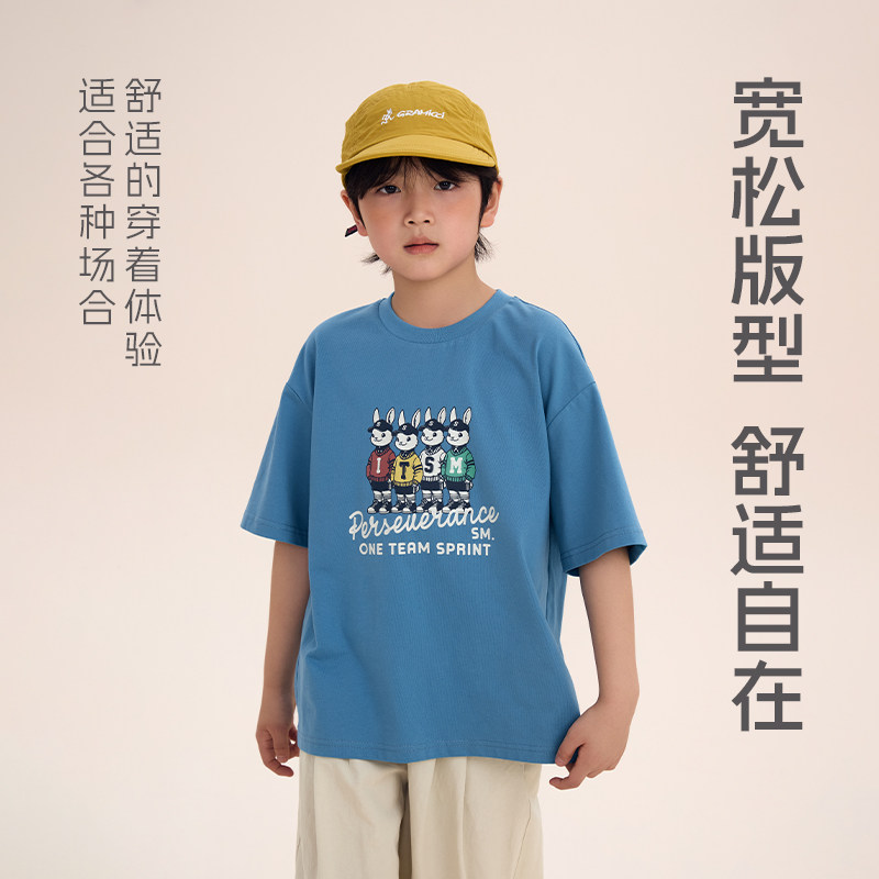 日系儿童复古兔子印花T恤男童女童宽松圆领短袖 上衣 smile Its由