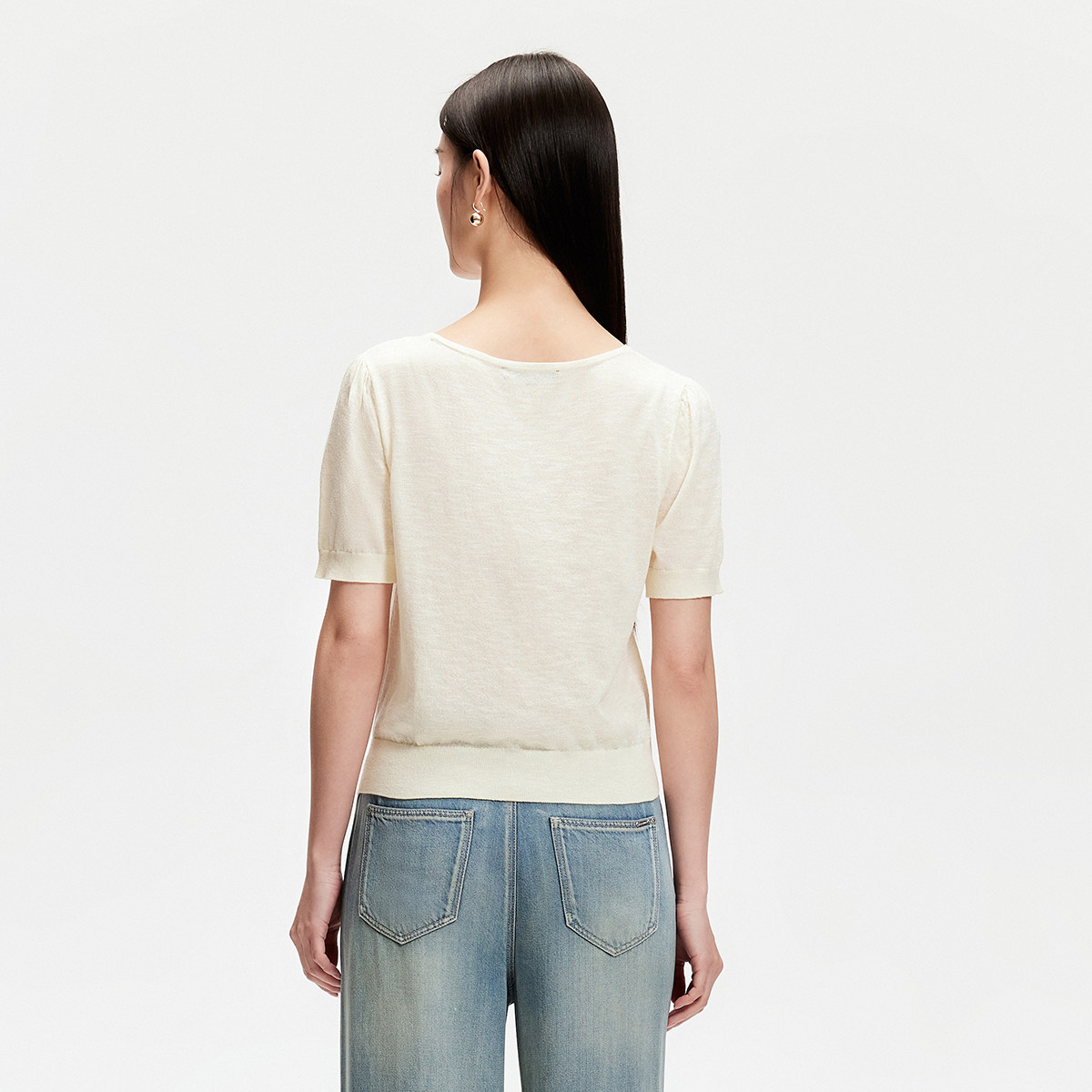 绫致Vero 25冬新泡泡袖 绑带玫瑰立体亚麻针织衫 甜美 Moda针织衫
