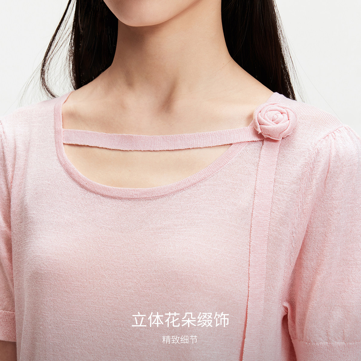 绫致Vero 25冬新泡泡袖 绑带玫瑰立体亚麻针织衫 甜美 Moda针织衫由