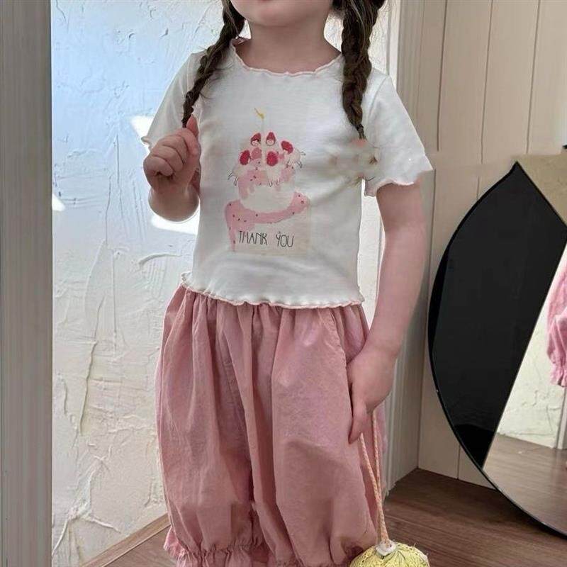 幼儿园中小童女宝宝洋气吸汗T恤七分裤 两件套TU7 卡通套装 女童夏季