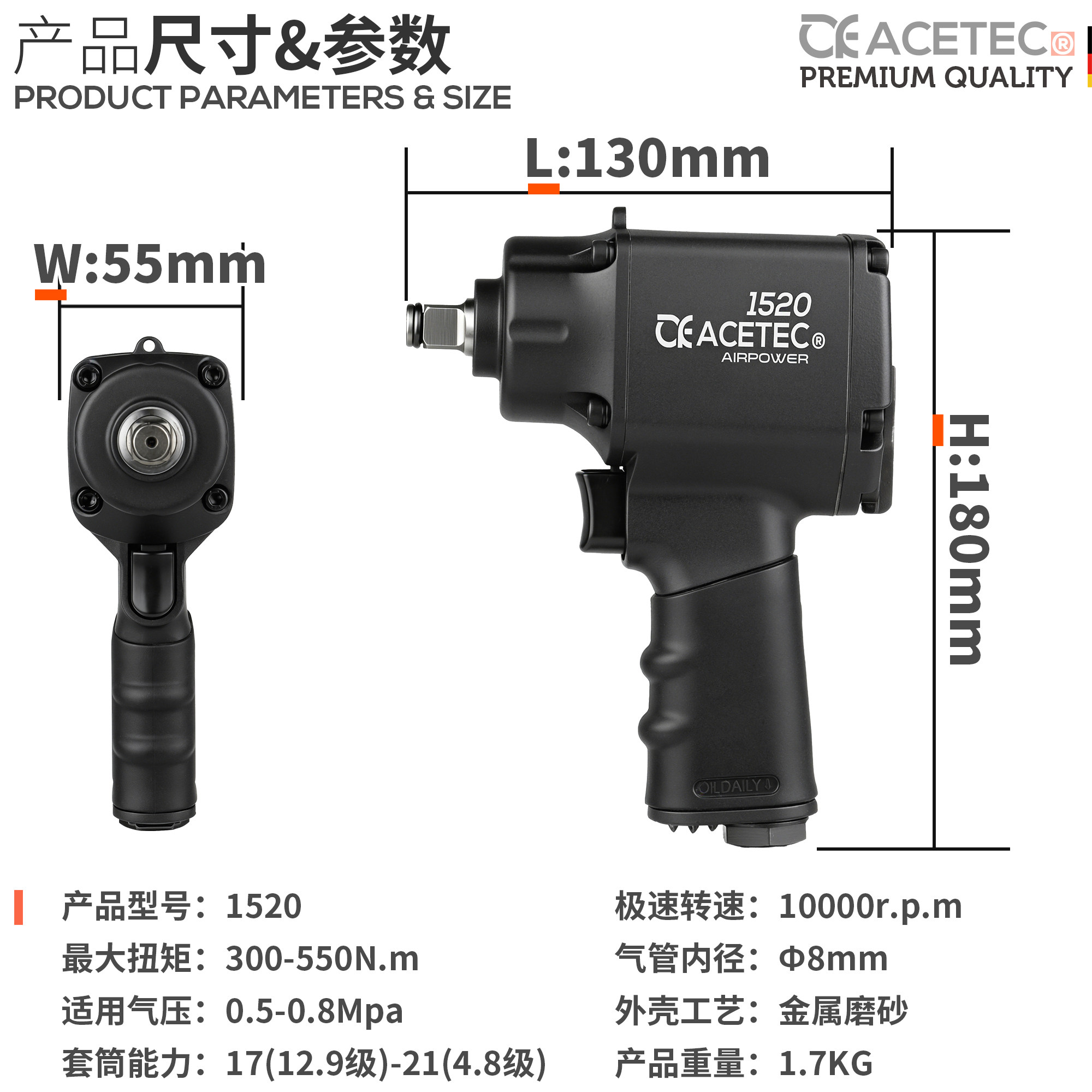 Acetec阿斯泰克AI1520迷你小风炮小型工业级1 8工具 2气动扳手3由