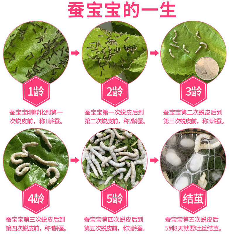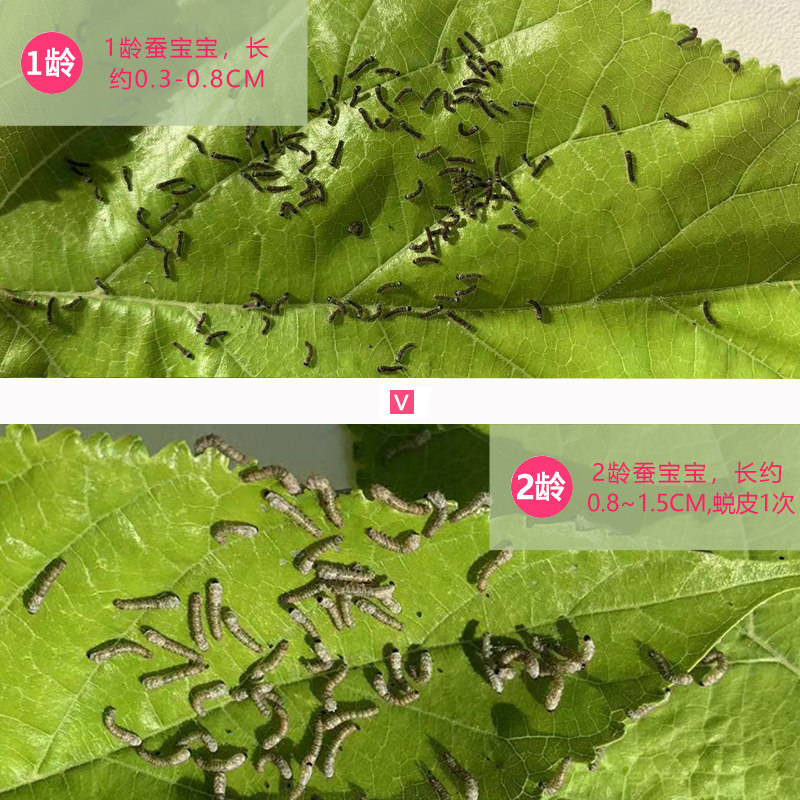 春蚕蚕种幼蚕1龄234龄送新鲜桑叶 蚕宝宝活体蚕卵蚕籽学生养蚕套装
