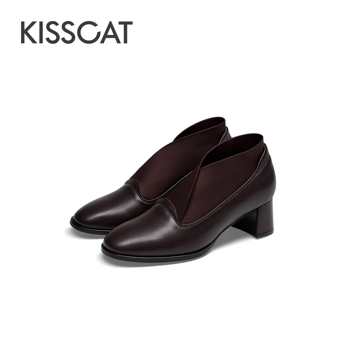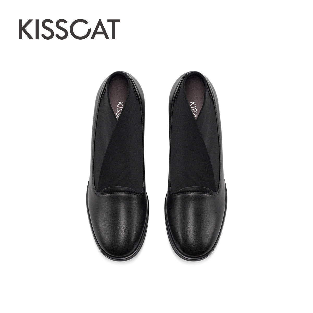 女素面深口单鞋 女 弹力粗跟乐福鞋 KISSCAT接吻猫KISSCAT接吻猫春季由