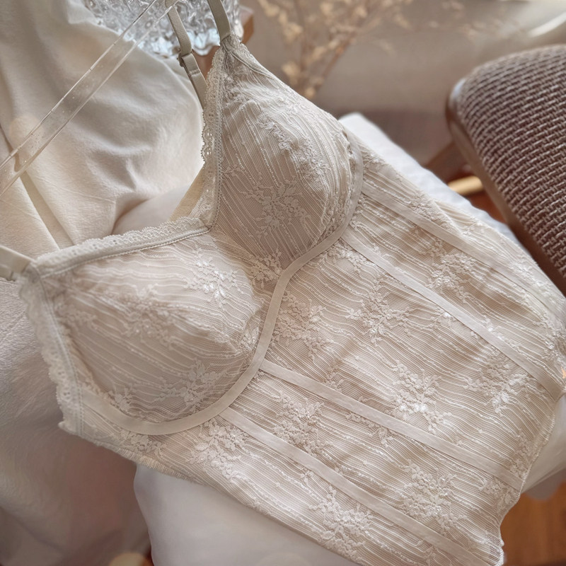 法式 温柔少女美背文胸无钢圈纯欲性感吊带背心打底衣带罩杯 蕾丝
