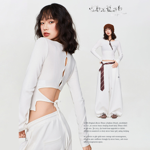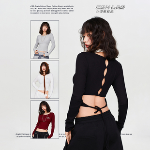 CBXLAB街舞潮牌春夏后背镂空绑带短袖 上衣女 性感柔软亲肤爵士修身