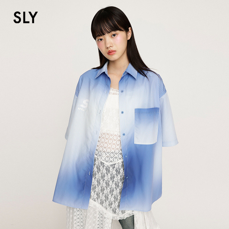 衬衫 SLY 春季 街头感中性风渐变色条纹短袖 1671 030HSZ30由