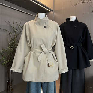 卡其色系带短款 2025新款 收腰宽松韩系廓形高级爆款 外套 风衣女春季